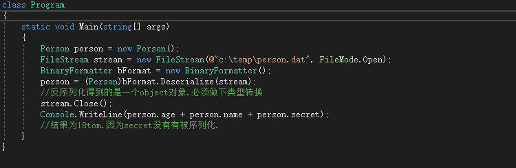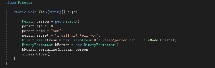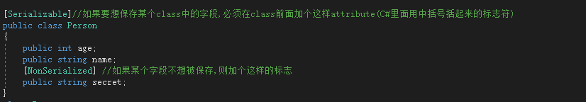 如果想讓類中的某個(gè)字段不可序列化,可以使用 NonSerializedAttribute 特性。